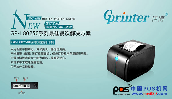 今天,中国POS机网小编将为您介绍国内领先的票据打印机知名企业佳博所生产的80热敏打印机系列的一款优质产品:GPL80250II票据打印机,这款产品是佳博专为厨房设计的高端厨打设备。