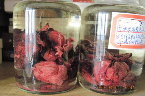 肠癌患者李女士服药30天后排出的坏死肿瘤组织