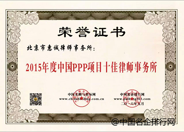 惠诚律师所全国PPP法律事务中心,是由惠诚北京总所牵头,全国16家分所专业研究PPP法律的资深律师组成。法律事务中心主任由PPP法律领域权威专家薛起堂律师担任,中心成员由均为硕士研究生以上学历的资深律师组成。在国家发改委主管的中国采购与招标网的评选中,北京市惠诚律师事务所荣获“2015年度中国PPP项目十佳律师事务所”和“2015年度交通PPP项目首选律师事务所”,团队的薛起堂律师还荣获“中国PPP项目金牌律师”称号。