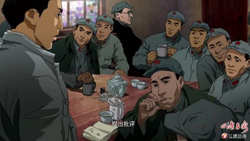 完美人设,自上而下的红军 毛泽东作为《四渡赤水》动画电影中绝对的主角,早在预告片曝光之初便被一众网友戏称为“这辈子见过最帅的毛泽东”;然而,影片中的毛泽东却不仅仅停留在“帅”这个层面之上,从博古、李德大权在握下其郁郁不得志,到一渡赤水战败后由于其正确的运动战思想,夺下军队指挥权,再到三渡赤水前洞察先机,被中央指挥团推举为军队最高领导,进而带领红军巧妙突破第五次反围剿的重重封锁线,这不单单是一个伟人的成长之路,更让所有观众从毛泽东的视角,见识到了红军在革命战争年代强大的内部调节能力。