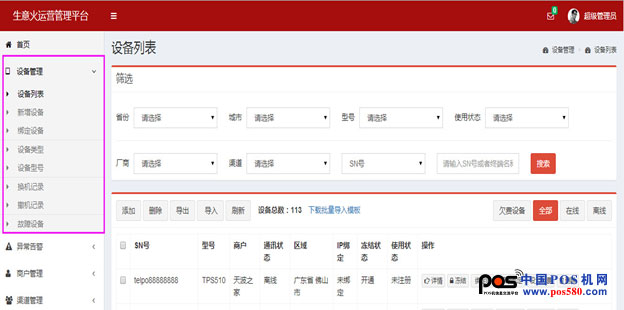 通过生意火运营管理平台导入的设备信息,可以实时查询设备的使用情况,并且可以追溯产品的生产批次等信息。提高设备管理的时效性与安全性。