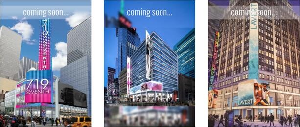 除了这块即将交付安装的1600㎡ LED显示屏,上海三思其他3个纽约时代广场项目也在紧锣密鼓地进行中。它们分别位于美国纽约时代广场百老汇1460号、1441号以及第七大街719号。其中,第七大街719号和百老汇1460号两处LED显示屏正处于安装调试阶段,有望在年内点亮;百老汇1441号项目正在筹备当中,即将启动。这3座大楼分别毗邻时代广场的两大地标建筑时代广场1号和2号楼,过往人流量巨大,显示屏画面无遮挡、视野开阔、覆盖面广,是时代广场中极具传媒价值的三个广告点位。