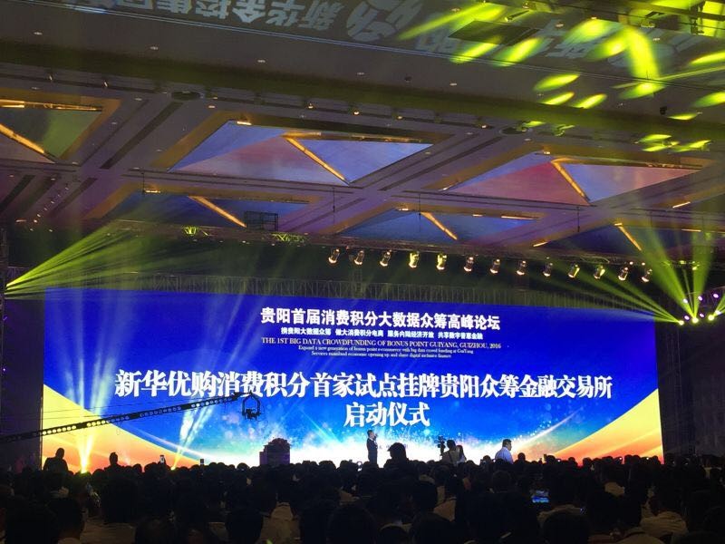 ? ?2016年9月26日,由贵阳众筹金融交易所、新华金控集团、新华优购电子商务有限公司、贵阳新华领筹消费积分管理股份有限公司、众筹金融协会共同主办的贵阳首届消费积分大数据众筹高峰论坛暨“携贵阳大数据众筹、做大消费积分电商、服务内陆经济开放、共享数字普惠金融”分论坛在贵阳国际生态会议中心隆重举行。