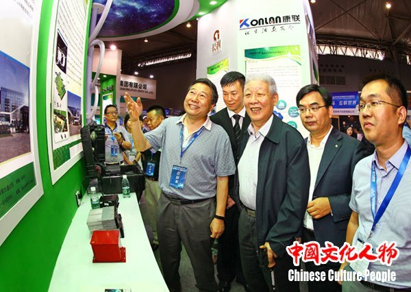 参加展览的单位向孙家栋院士介绍高新技术产品
