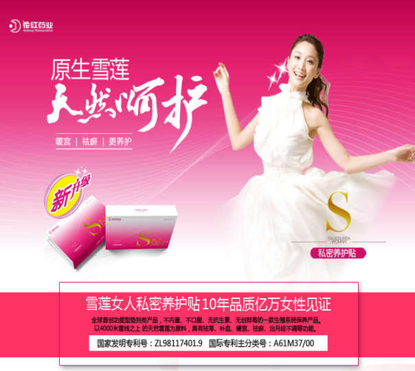 雪莲女人私密养护贴是一种世界首创的新型女性会阴部护理品,它不仅能有效消除分泌物多、瘙痒、异味等问题,更能抑杀病菌,阻隔感染,修复创伤,养护会阴,调节内分泌,越早使用,更年期越晚到;使用有效、安全、舒适、方便,不受年龄、环境限制,不影响工作、学习、生活。所以,建议女性朋友把使用雪莲女人私密养护贴作为自我保健的一个重要环节。