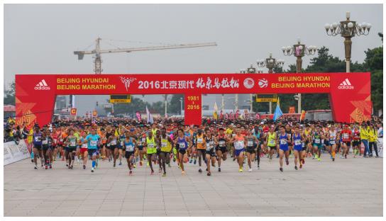 (2016年9月17日,北京)今天清晨,2016北京马拉松在天安门广场正式鸣枪起跑。伴着清晨的第一缕阳光,3万5千名跑者穿着阿迪达斯精心准备的马拉松装备全力出发,携无限能量跑向终点,#跑给你看#。最终男子组第一名获得者,是来自埃塞俄比亚的Gebre,他以2时11分09秒的成绩成功夺金;而女子组冠军则由同样来自埃塞俄比亚的选手Biru收入囊中,她获得2时25分56秒的好成绩,为今年全马增添傲人纪录。作为北京马拉松官方合作伙伴及唯一指定运动装备供应商,阿迪达斯也全程助力今年的北马赛事,鼓励参赛选手们突破自我,用能量创造更好的跑步记录。
