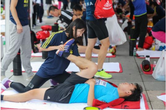 赛后阿迪达斯为跑友们提供贴心的放松服务