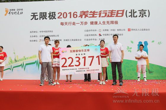 养生行走日同时也是一场思利及人的善行。本站活动为“希望工程·无限极快乐足球”公益项目一共筹集到了223171元的善款,善款将用于边远地区学校足球设施、课程以及足球文化的建设与推广,让孩子们体会运动的快乐,培养健康意识和正面思维的情志。