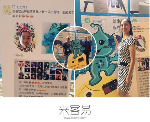 来客易拍照区是体验区的又一看点,活泼可爱的来客易吉祥物“来来”做出邀请的姿势邀请嘉宾跟它合照,而它旁边的拍照区域则是真实还原朋友圈内容和场景,创意十足,吸引了不少人合影留念。