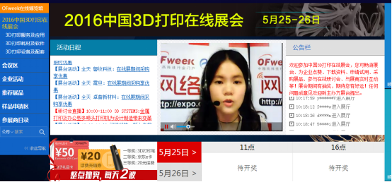 此外,本次在线展会也集中体现了其优势。相对传统的展会,“2016中国3D打印在线展”创新性地引入了真人直播形式,突破地域限制,拉近企业与客户之间的距离,提升沟通交流效率。同时开设了24小时直播平台,让在场参展观众能够真正加深与企业之间的了解与沟通。
