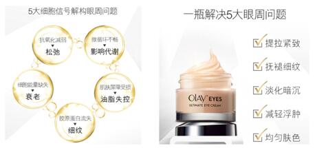 OLAY专研眼周精粹系列主打产品——美妆界首款“眼部素颜霜”OLAY多效优越眼部精华霜首度亮相!科学家更首度揭秘“眼部素颜霜”的3大EYE睛英修炼秘籍,一瓶修护五大眼部问题: