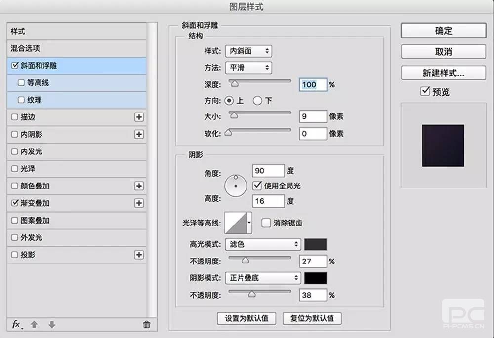 (比如斜面与浮雕,渐变,内发光,阴影等等等)