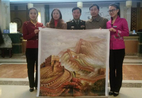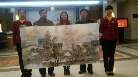 据济南军区燕子山庄宾馆负责人介绍,燕子山庄隶属于中国人民解放军济南军区司令部,是济南军区最重要的接待中心和高品质宾馆。山庄占地近百亩,建筑面积四万平方米,环境幽雅温馨,是济南唯一一家有花园、有山的高档宾馆。在宾馆成立十周年之际,能够收藏乔领、宁雪君这两位国家级著名书画家的精品力作,是两位老师对我们部队宾馆建设的热爱和大力支持,我们深表感谢和敬意。我们一定要把两位艺术家的作品爱护好,让每一位来宾都能够切身感受到两位艺术家的作品魅力和深情厚谊。