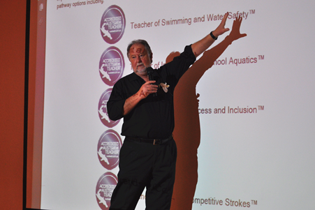 ??? 代表澳洲政府的无盈利组织AUSTSWIM,是世界范围内的行业先驱与标杆领导者。AUSTSWIM组织的执行总裁(CEO)Mr.rdon先生为与会人员分享了澳洲在过去近40年的国家水中教育历程,他说:“当年澳洲AUSTSWIM创立时跟今天如出一辙,一些从澳洲各个城市汇集到一起的水中教育先驱者们,决议把各类与游泳教学相关的水中教育理念分享给更多的人。30多年过去了,当年政府甄选的游泳课程已经成为澳洲中学的规定科目,且经年累月之后澳洲的国民素质也更加强健,溺水身亡的数字在逐年递减。所以,有了这样一个全国性的改变,我们便可以预见,我们今天成立国际水中教育联盟(IAE)将会给更多的国家带来改变。”