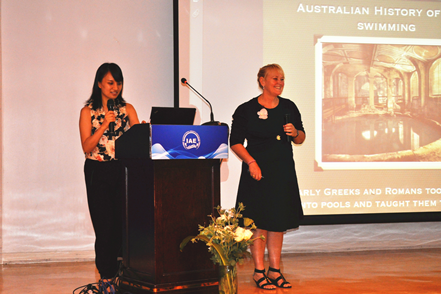 ??? 来自澳洲的AQUATIC?EDUCATION的资深教练员培训讲师Marcelle?终身致力于改善水中教育的培训工作,她曾经不间断在澳洲、马来西亚、越南、新加坡、中国内地和中国香港穿梭,教授了千万名游泳教练员。Marcelle与大家分享了澳洲在水中教育体系建立之初的几位先驱者的故事,继而探讨了一些专业方面的关键议题。她希望可以借助IAE这个国际平台,把澳洲和其他亚洲国家的宝贵经验输送给中国,共同襄助中国水中教育体系的建立。