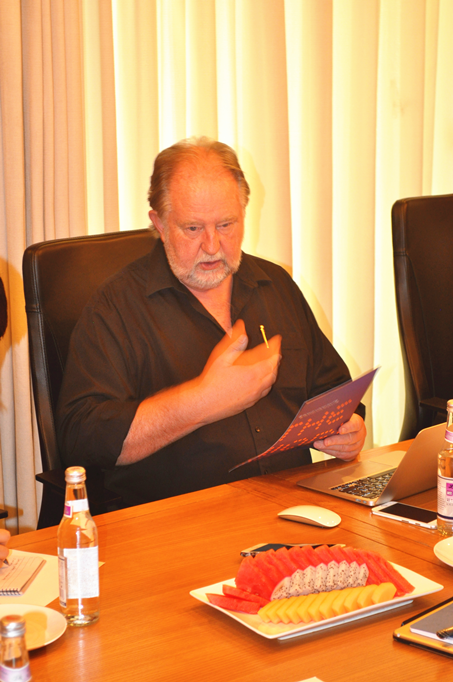 ?(上图为AUSTSWIM主席rdon先生为与会人员与媒体朋友介绍澳洲水中教育构架的类别与体系)