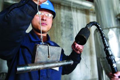 一条“灵蛇”钻进停运的汽泵内,代替人眼观察汽泵内的情况,维修人员仅用一块磁铁就排除了设备故障。昨日,记者在青岛能源集团开源后海热电公司看到了这样一幕。?