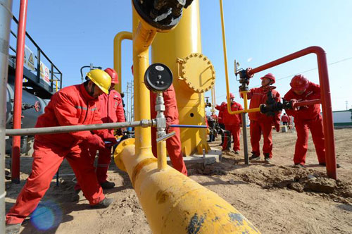 图为3月8日,采油四厂技术人员在现场讨论2号机组与1号机组气驱管线分配布局,力争全站早日投运。中原油田文88注气站2016年12月试运行以来,天然气驱先导实验项目成效显著,采油四厂扩大注气规模,成立注气二站,增加两套天然气压缩机组,针对文72块对应油井进行气驱试油,目前自主安装调试的1号压缩机组试运正常,单井日注气量3万方左右。