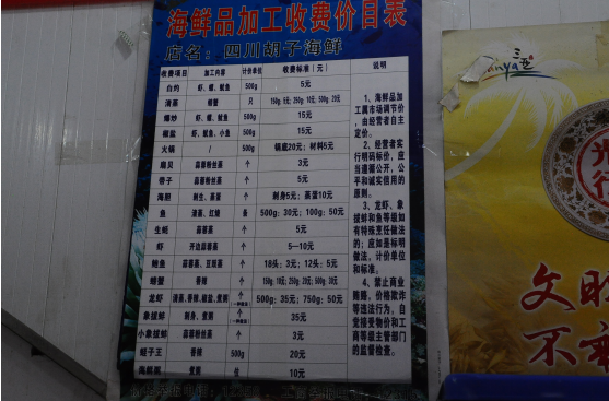 1、?第一市场,新民街126号,四川小胡子海鲜加工店(需要去第一市场买海鲜过去加工)