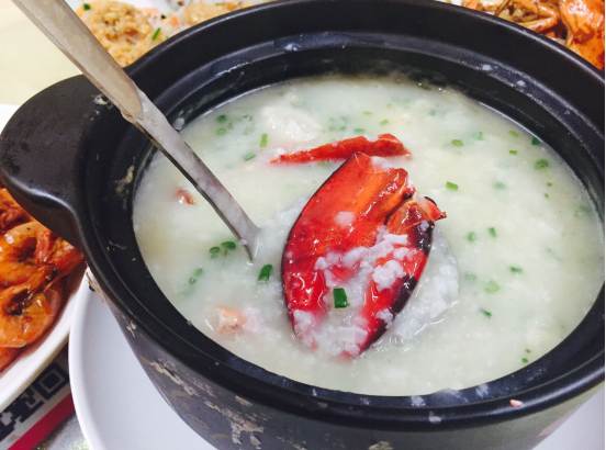 龙虾身子蒜蓉开边蒸了,头当然也要合理的利用起来,龙虾头熬粥,不仅有营养,而且还饱肚子,哈哈哈。