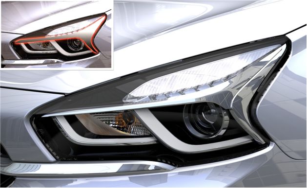 瑞虎7的前大灯此次也得到首次曝光,从图片看与TX概念车几乎完全一致,大灯内部采用了富有设计感的三叉戟镀铬装饰,并用L型镀铬装饰带将近光灯与转向灯分割开来,造型精致,富有科技感,而且辨识度很高。