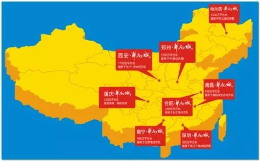 华南城迄今已开发建设并运营有深圳、南宁、南昌、西安、哈尔滨、郑州、合肥、重庆八大项目,总规划建筑面积超过8676万㎡,总投资额突破1400亿元人民币。全国布局,八城联动,助你把生意做到全国各地。