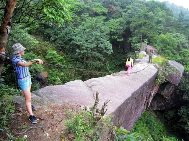 齐云山中有一座巨大无比的石桥,名曰:仙缘桥,又名爱情桥。传闻牛郎与织女曾在这里相会,不去考证什么,带着美好的故事感念自然的恩赐。一整块巨大的石头,连接着山的这头与那头。一根铁链,保护着过往的行人。