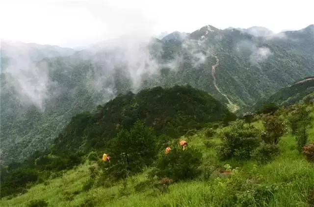 一段旅程的开始总是伴随着不同的风景,在山顶下方遇上一片高山草甸。不知道此处的海拔有多高,但是仿佛置身云端一般。山雾围着我们跳舞,我们在其中尖叫、呐喊。