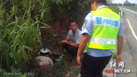 自驾游途中,肚子突然饿了,怎么办呢?湖南省高速公路交通警察局常德支队澧县大队民警在巡逻时,发现有人在高速港湾边上用石头搭建了一个简易的“灶台”做饭,“灶台”四周杂草丛生,存在极大的安全隐患。