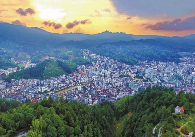 桂东县围绕建设“悠闲之城”“两型之城”“精美之城”,着力把县城打造成生态“两型”秀美山城。图为夕阳映照下的桂东县城,让桂东蓝天旅行社有限公司带您游桂东。