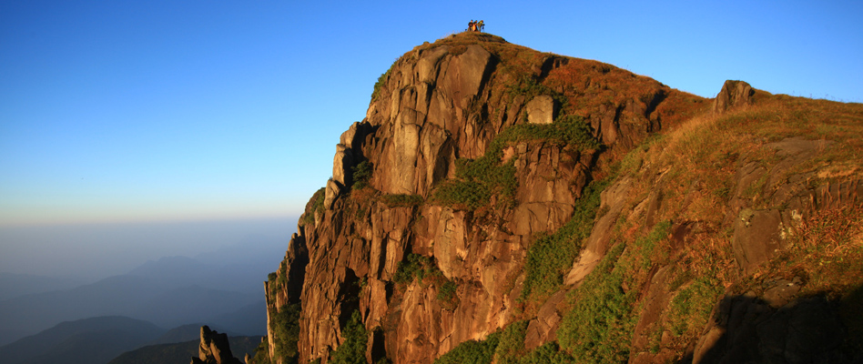 湘南最高峰,登山顶,览群山,云涛翻滚,佛光出现,山侧高山草甸,怪石奇观。山顶古寺,空明净远。相传道教祖师张三丰在此修炼。(普乐)