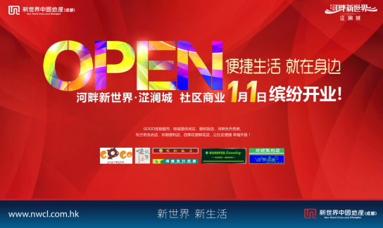 随着天府新区交通、商业、教育配套的不断完善,在天府新区生活也越来越便利。河畔新世界雄踞天府新区繁华之心,享地铁1号线三期工程“广福站”以及34万m2地标商业——成都新世界广场等诸多利好,受到城南置业人群的一致认可。如今,河畔新世界淽澜城精心打造的社区商业将于2016年1月1日缤纷开业,涵盖超市、餐饮、药房、洗衣店等多种生活业态,相信未来定能为河畔新世界业主的日常生活带来极大便利,让幸福升级!当然,为了回馈新老业主,开业当天还有惊喜等着大家!超市、布兰奇洗衣店、河畔永升药房诸多商品任您选择,优惠低至5折起,啖城堡休闲庄、顺和饭店代金券到访就送。不仅如此,部分商家到店还有惊喜礼品相送,数量有限,先到先得!感兴趣的朋友,不妨在1月1日亲临河畔新世界淽澜城社区商业,感受开业惊喜吧!
