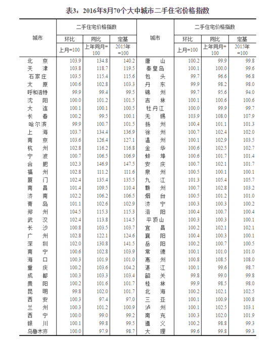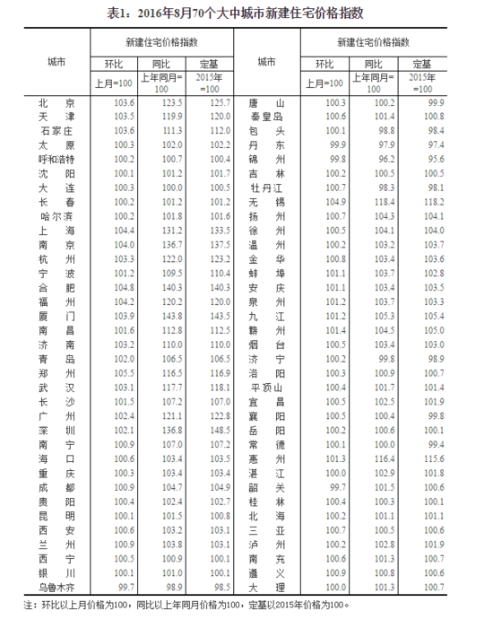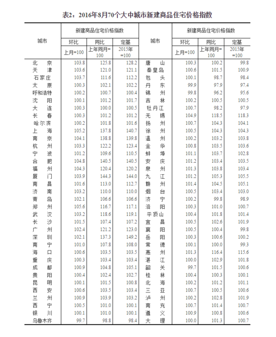 (二)与上年同月相比,70个大中城市中,价格下降的城市有6个,上涨的城市有62个,持平的城市有2个。8月份,同比价格变动中,最高涨幅为44.3%,最低为下降3.8%。