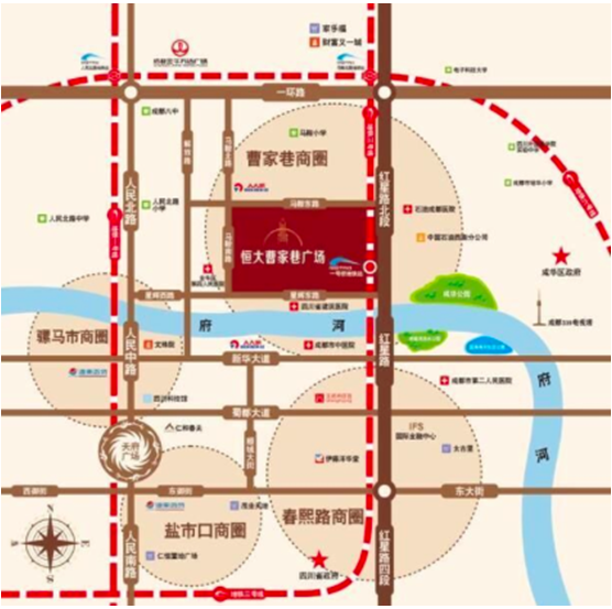 纵观整个城北,此类大型综合体的出现较为罕见,并且恒大曹家巷广场位于府河之畔,靠水而居的居住品质带来了大量当地居住人口的消费。并且恒大曹家巷广场位居春熙路、盐市口、骡马市、建设路、财富又一城、金牛万达六大成熟商圈核心,一环以内,双地铁支撑,将带来源源不断的人流量。