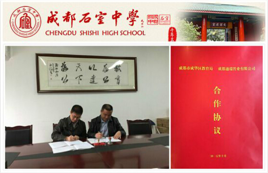 成华区教育局局长毛军先生、永立集团董事长谢永先生共同签订石室学校合作协议