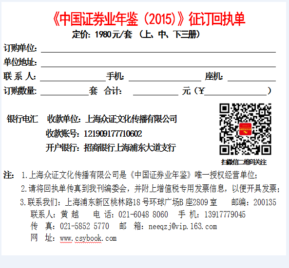 《中国证券业年鉴(2015》已经正式发行,请各相关单位积极征订!
