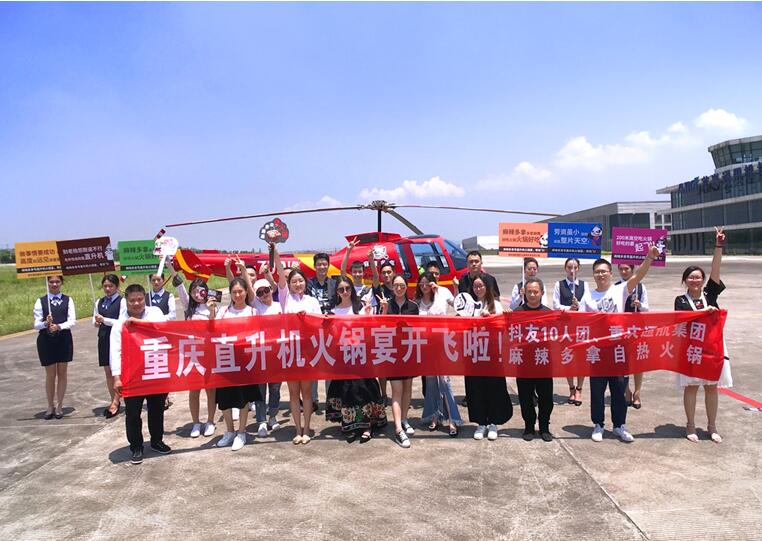坐着价值1200万的重庆造直升机、吃着不需要生火的重庆麻辣多拿自热火锅,在重庆主题原创单曲的陪伴下,飞到百米高空,大快朵颐一顿丰盛的火锅宴席。这样的体验,只有一场原汁原味的重庆直升机火锅宴可以给你。昨日,记者获悉,由麻辣多拿自热火锅打造的重庆首个直升机火锅宴正式开飞,未来,将研究开发出专门旅游产品的可能性。