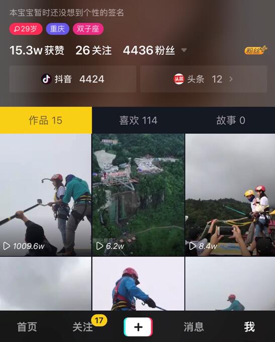 记者注意到,这些视频在抖音热门推荐的刷屏率极高,动辄便有上千万次播放,几位刚注册的抖音新手,发出的高空荡绳的多条视频都赢得数十万网友点赞、上万网友评论。网友纷纷表示“隔着屏幕,心都是凉的”、“给我500万,我也不敢跳”。