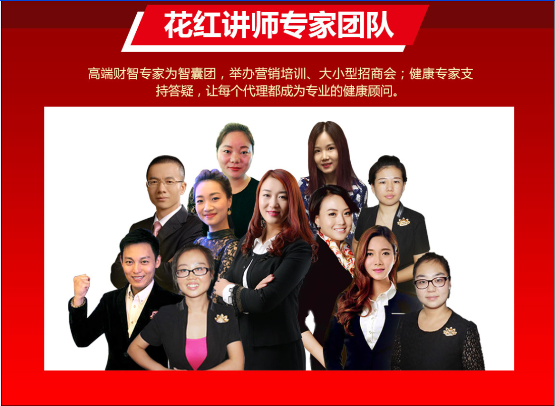 以UU女神黄鑫超为核心的花红微商团队+妇科专家、营销专家培训团队