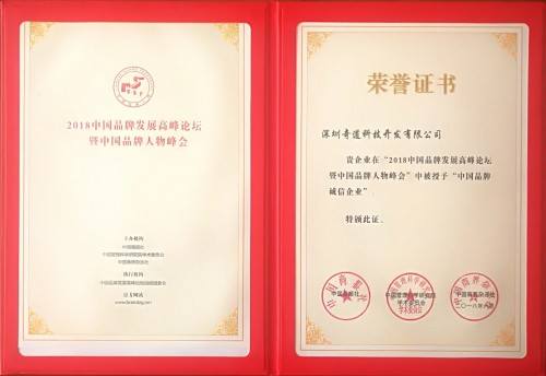 深圳奇道科技历经了多年的发展,在技术方面取得了突破性的进展,无耗材可清洗空气净化器技术受到了广大家庭、企业、医院、政府的认可于支持。奇道科技受邀于“2018中国品牌发展高峰论坛”参加论坛会议,在此次会议中荣获“中国品牌诚信企业”奖牌。