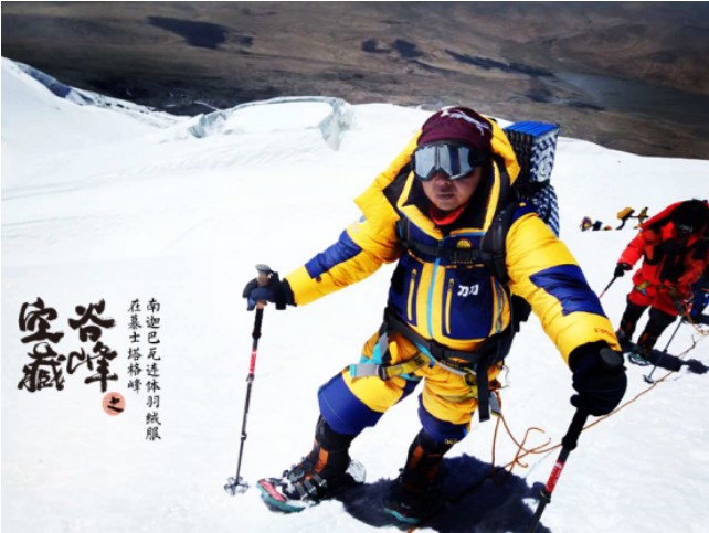 ? ? 天石作为中国户外保暖专家,天石打造出雪线之上登峰必要装备:南迦巴瓦连体羽绒服。