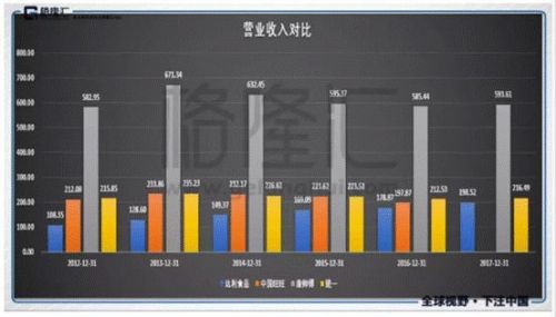 下面我们再看看达利与其他几个行业龙头的对比。从下图中我们可以看到,在其他几家食品行业龙头增长停滞并且有所下滑的情况下,达利集团的营业收入是逐年稳步增长的,虽然离康师傅还有很长的距离,但是在2012年的时候营业收入只有旺旺以及统一的一半,在2016年的时候已经和它们越来越接近了。