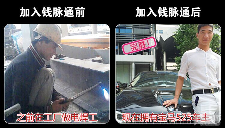 感谢钱脉通创始人凌辰老师,还有我们团队的总裁黄俊老师,以及我在钱脉通所有帮助过我的家人们!谢谢你们!非常感谢,一年时间让我从电焊工变成宝马车主,人生还有那么多个一年,还能不断的突破自己。想改变,就趁早吧!拒绝拖延,抛弃借口,你一定可以成功!