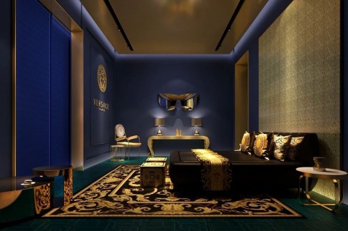 楼梯是垂直空间交通工具,亦是极具创造性的雕塑艺术品,设计从立体几何发展加以有机线条,其隽永有秩,赋予楼梯轮廓遒劲,线光与Versace经典回形元素漂浮于楼梯,呈现优雅庄严之美。