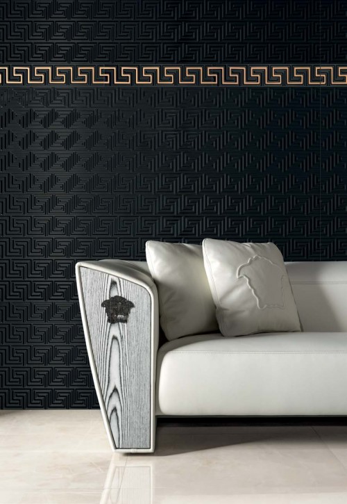 现代和复古。极简主义的进一步演化是从黑白灰到黑与烟熏的延伸,黑色空间重新回归。哑光金色回形纹,沉淀着复古年代感,演绎着低调的贵族奢华。