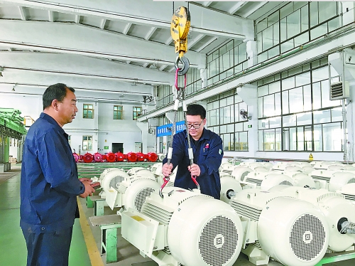 图为质检人员在对即将出厂的节能电机进行最后一次质量检验。通讯员 孙微 摄影报道