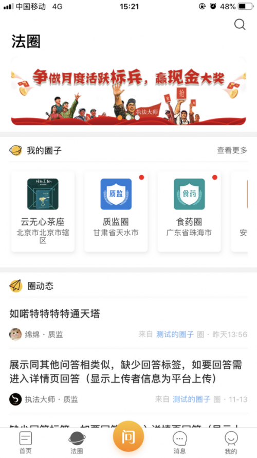执法大师App作为、通过互联网、大数据等技术手段、依托于问答、线上培训、法律法规等模块,全力帮助市场监督管理局一线执法人员提高工作能力。目前,App内已经汇集10000余名用户,300多位行业专家、法律专家,以老带新,以点带面,让用户充分交流,快速成长。