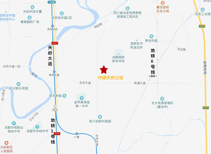 中建天府公馆位于中和红星路南延线与观东二街交汇处。