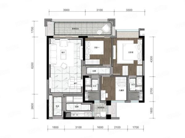 E户型(三室两厅两卫 112㎡)