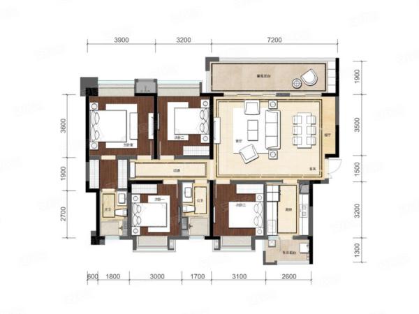 B户型(四室两厅两卫 175平米)